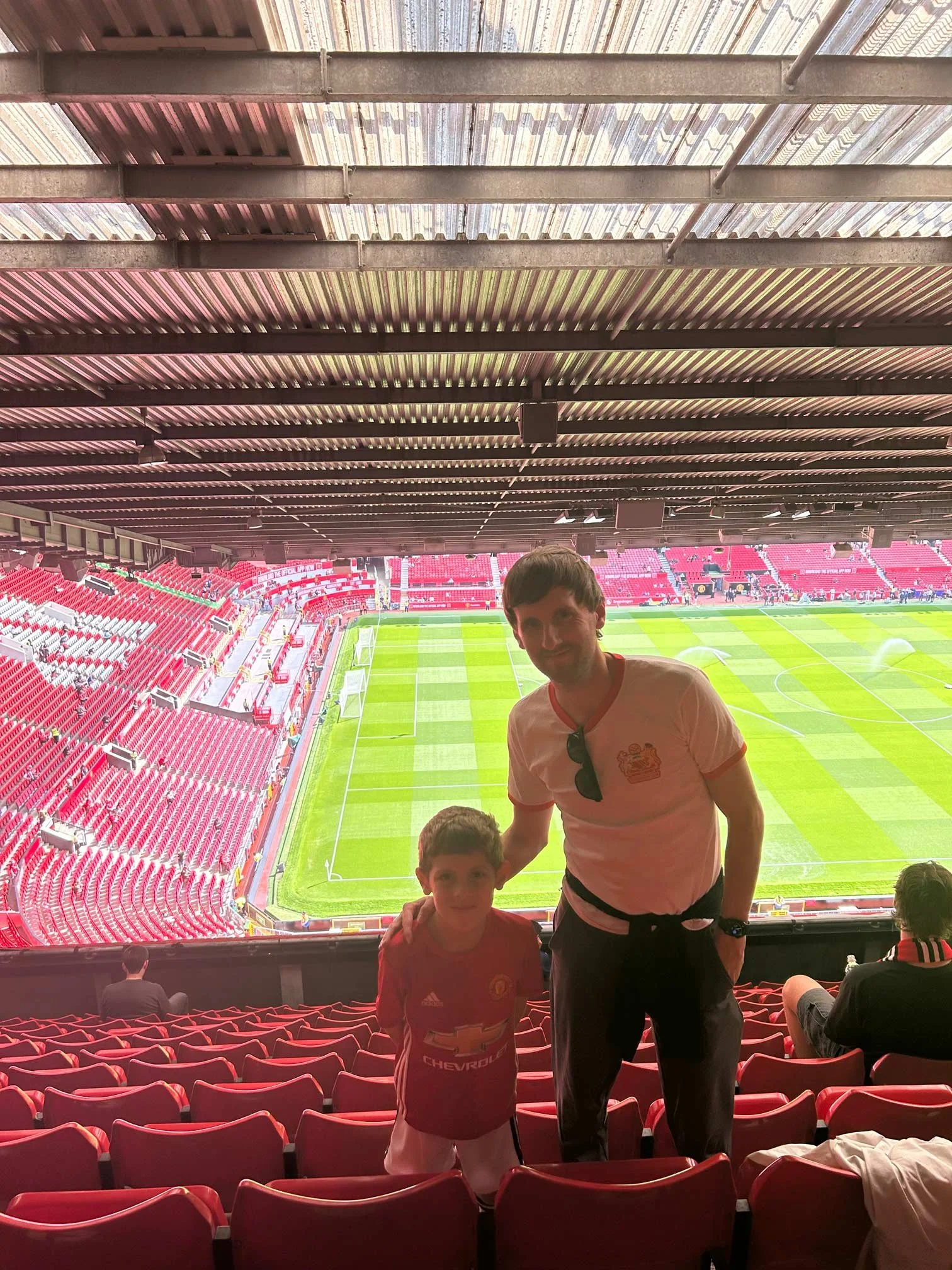 Me and Ryan after watching United beat Lyon, sat in NW3431 at Old Trafford.